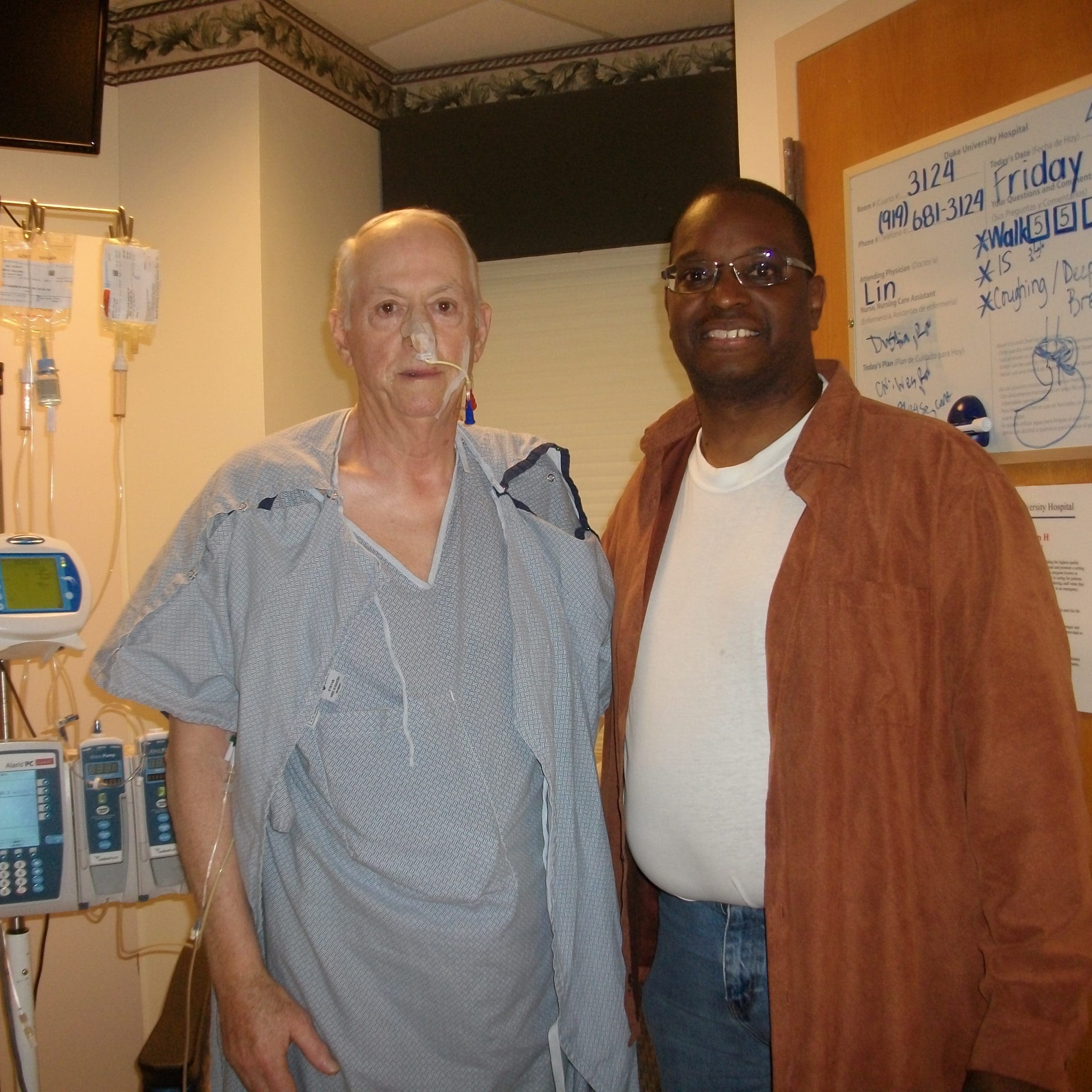 At that moment, Mrs. Green was at an attorney’s office finalizing power of attorney paperwork. Her daughter called and said, “They’re getting ready to LifeFlight Dad to Duke. I’ve packed clothes for you. You need to get here so you can fly out with him. I’ll drive the car up next week.”